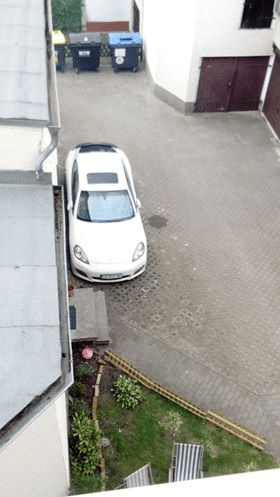 „Der Porsche der Bulgaren auf unserem Hof!!! Steht vor unseren Garagen!!! Interessiert die auch nicht ob wir da rauskommen mit den Autos! Die machen was sie wollen hier.“