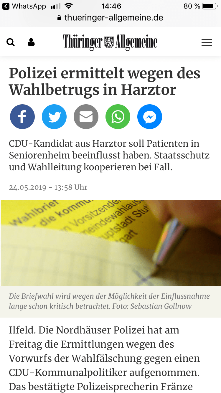 Bei Google unter „Wahlbetrug Harztor“ findet der interessierte Leser die ersten Schlagzahlen der Mainstream Presse…