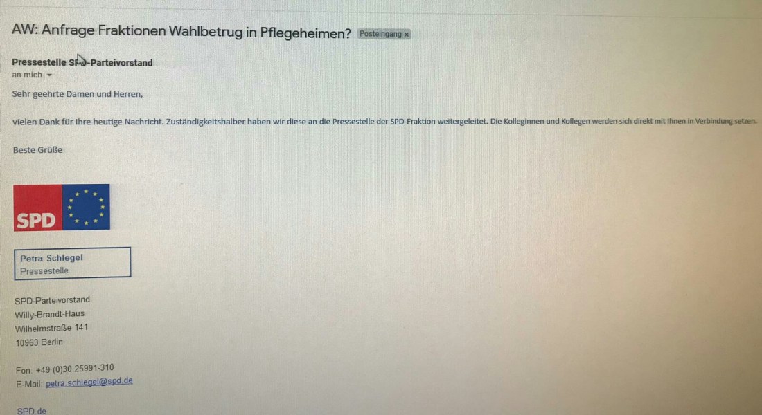 Die erste Antwort von der SPD haben wir bereits erhalten…