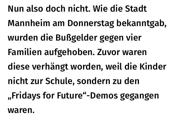 Wie nicht anders zu erwarten war – und bereits von uns angedeutet – zieht Mannheim die Bußgeldbescheide gegen die Schulschwänzer zurück.