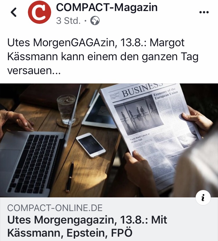 Ihre ganz besondere Art der Berichterstattung zieht immer weitere Kreise und kommt so gut an, dass sie jetzt – nach uns – sogar bei Compact veröffentlicht wird💪🏻
