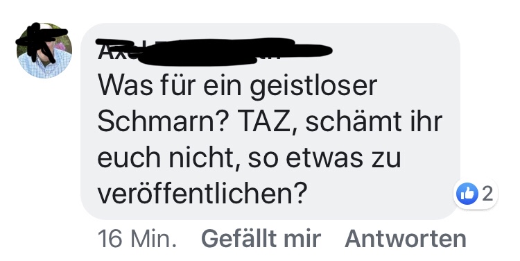 Die Kommentare auf der Facebookseite der TAZ sind hoch interessant😀