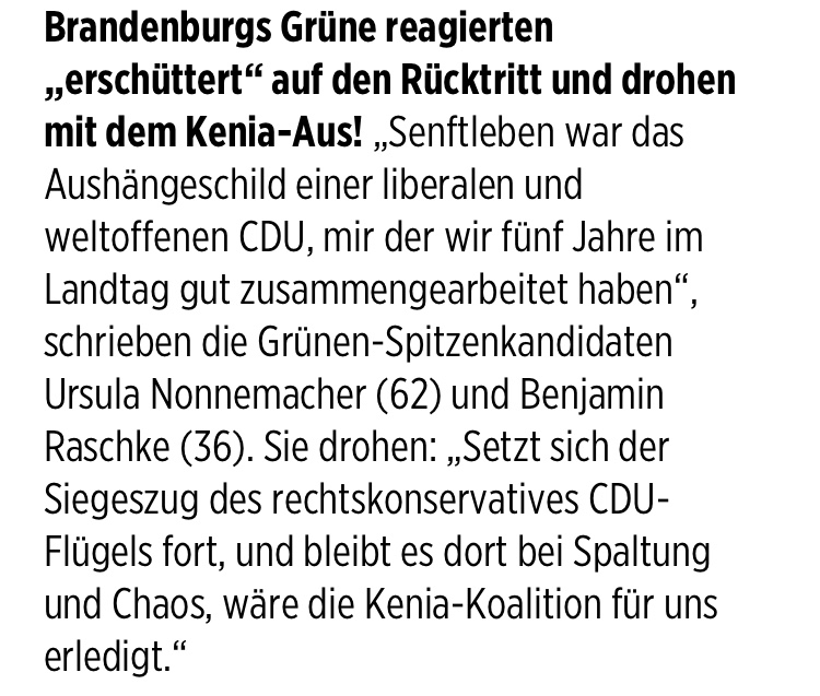 Die Grünen sind erschüttert und drohen mit dem Platzen der geplanten Koalition.