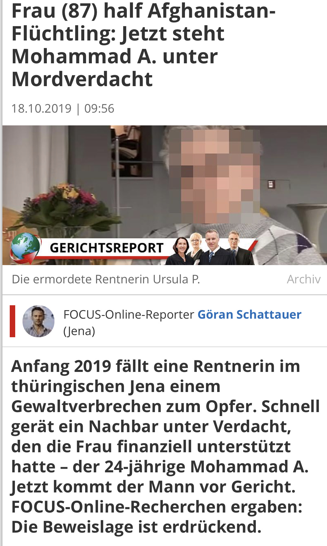 „Obwohl das Bamf den Asylantrag ablehnte, wurde Mohammad A. nicht abgeschoben. Ein Psychiater bescheinigte ihm eine „posttraumatische Belastungsstörung“, hervorgerufen durch den Krieg in seiner Heimat. 2016 erhielt eine Aufenthaltserlaubnis.“