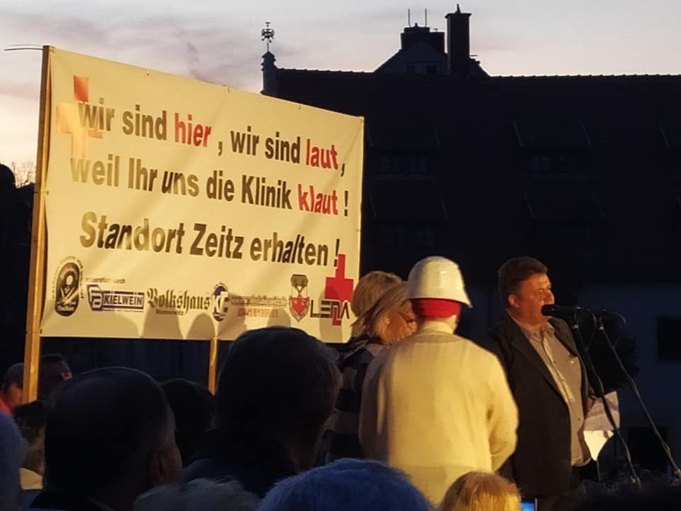 Auch Landrat Götz Ulrich ist wie gestern bei den Protesten zugegen. Am Montag spürte er deutlichen Gegenwind und den Unmut der Zeitzer Bürger. Heute hat Herr Ulrich gute Nachrichten im Gepäck. Die Geburtenstation in Zeitz soll erhalten bleiben. Nun muss noch der Kreistag im Burgenlandkreis zustimmen und jährlich 1, 7 Millionen Euro aufbringen. Götz Ulrich kündigte schon an, dass dann der Gürtel in anderen Bereichen enger geschnallt werden müsse.