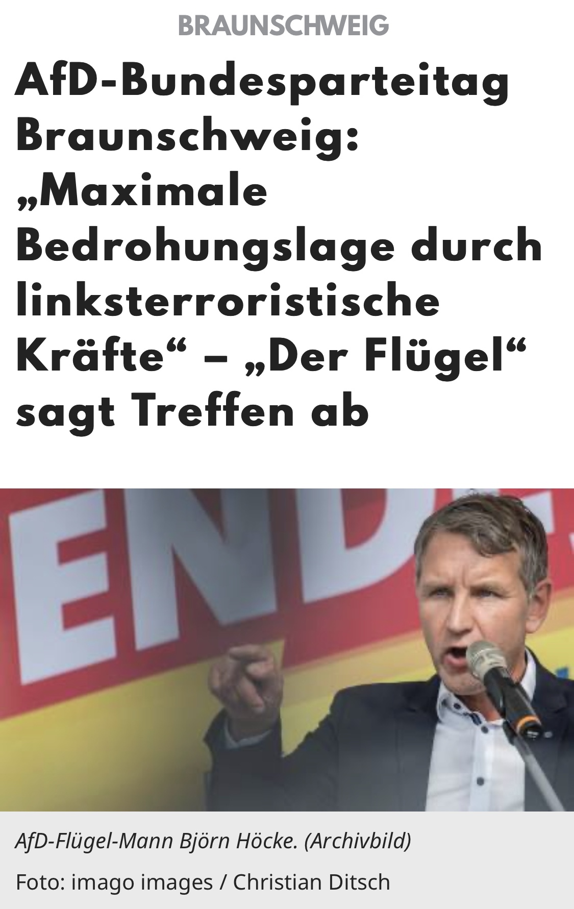 „Der Rechtsausleger der AfD sagt sein geplantes Treffen ab. „Der Flügel“ wollte eigentlich heute Abend in Braunschweig ein Delegiertentreffen ausrichten – aber daraus wird nichts.