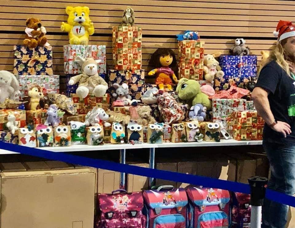 Morgens um 8.00 Uhr ging es für die zahlreichen Helfer los. Tische und Stühle aufbauen und in Position bringen. Unzählige Kisten mit Sachspenden und liebevoll verpackten Geschenke wurden an den verschiedenen Positionen in der Halle drapiert. Alles mit System. Den meisten Platz benötigten die fleissigen Mädels am Stand der Bekleidung und ähnlichen Bedarf. Unmengen von Sachen, Schuhen und Heimtextilien wurden angekarrt.