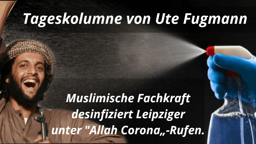 Leipziger bin ich auch nicht. Aber stolzer Sachse. Egal. Auf dem Hauptbahnhof der sächsischen Messer- ähm Messestadt brüllte ein 37 jähriger Libanese am Donnerstag mehrfach ,Allah Corona’ und besprühte Passanten mit Desinfektionsmittel. Ob das Zeug geklaut war, blieb ebenso offen wie die Motivation des göttlichen Zer- ähm Bestäubers aus dem Morgenland mit 1,72 Promille auf dem Kessel. Gut desinfiziert.
