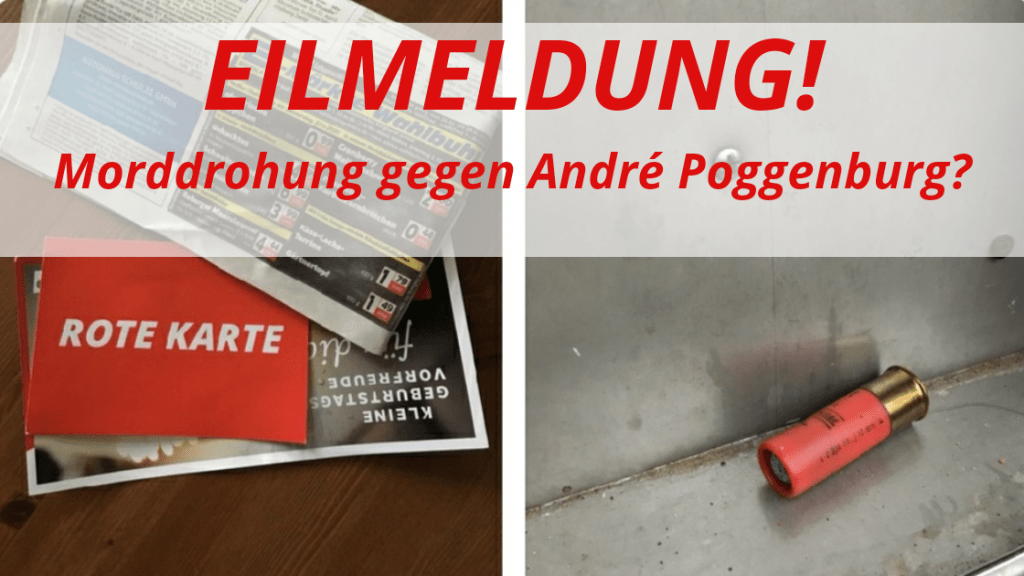 Nach vorliegenden Informationen erhielt der Abgeordnete und Linksextremismusexperte André Poggenburg eine „zündende Botschaft“ in Form einer roten Schrotpatrone und einer Karte mit der Aufschrift „Rote Karte“. Die Polizei habe die Ermittlungen aufgenommen, nach erster Inaugenscheinnahme handelt es sich nicht um eine Munitionsattrappe.