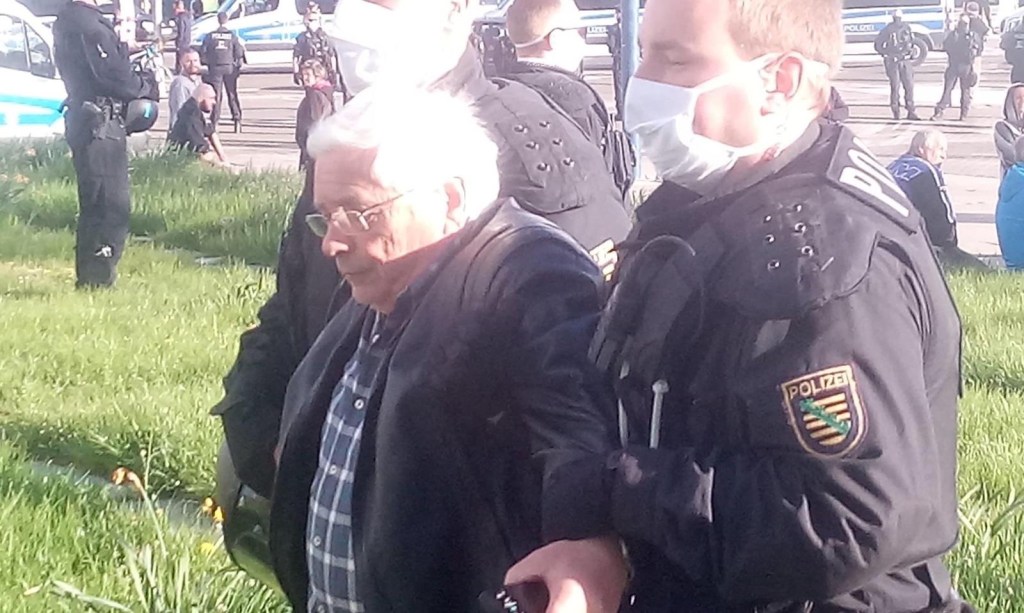 Denn hier werden keine kriminellen Schwerverbrecher abgeführt, sondern friedliche Bürger, die für den Erhalt ihrer zugesicherten Grundrechte einstehen!“