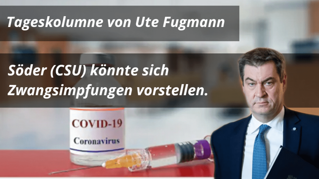 Dass der bayrische Söder eine Zwangsimpfung befürwortet, erstaunt nicht mal mehr den gemeinen Bazi. „Für eine Impfpflicht wäre ich sehr offen“, sagte der CSU-Häuptling bei einem Treffen mit dem baden-württembergischen Ausserirdischen der Grünen Winfried Kretschmann. „Bis es einen Impfstoff gebe, könne es keine Entwarnung und damit keine Lockerungen ohne gleichzeitige Auflagen wie eine Maskenpflicht geben“, meinte Markus Söder.