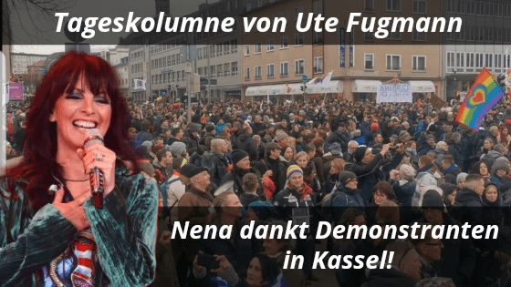 Nena macht wahrscheinlich auch nicht mehr lange mit. Die Ikone der Neuen Deutschen Welle traut sich immer mehr ans Licht der ganz neuen Welle. „Danke Kassel“ schrieb sie in ihrem Instagram-Kanal zu Bildern der Demonstration vom Wochenende. Gut so. Ich war zwar nie ein wirklicher Fan von ihr, aber das rechne ich ihr hoch an. Die merkelhörigen Medien zerfetzen sie gerade in tausend Stücke. Ihre Fans werden sie wieder zusammenfügen und hinter ihr stehen. Die 99 Luftballons der Merkel-Diktatur zerplatzen gerade einer nach dem anderen.