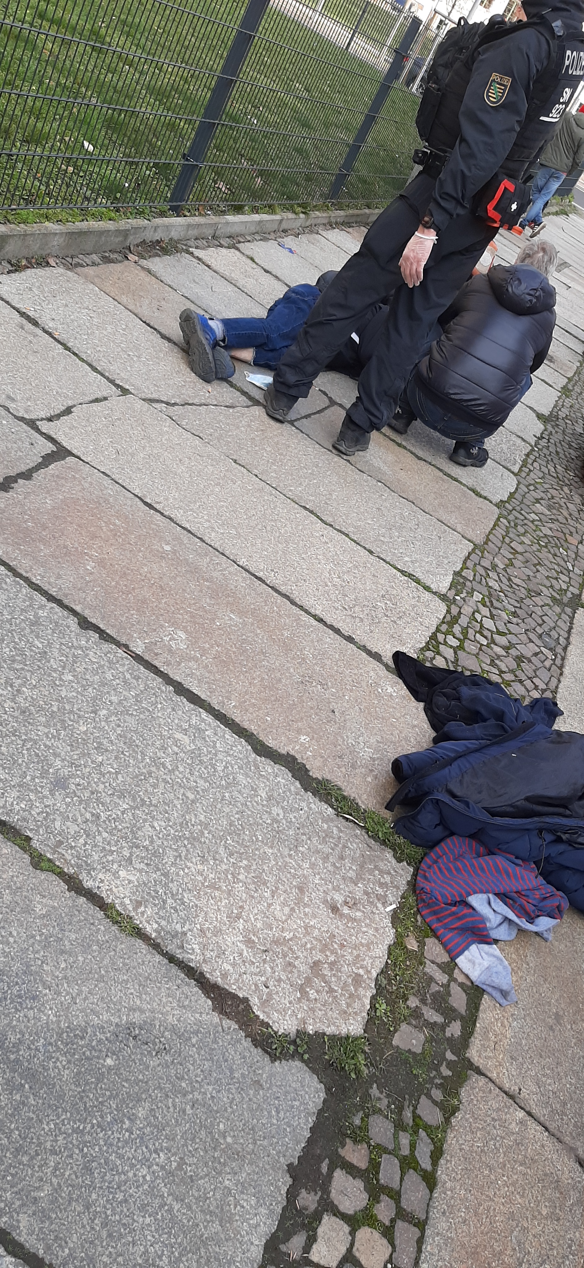 Die polizeiliche Maßnahme dauerte lange, ohne Trinken, ohne Möglichkeit sich hin zu setzen. Für einen Teilnehmer endete der Besuch dieser friedlichen Veranstaltung im Krankenwagen, da er plötzlich umkippte. Ein epileptischer Anfall, die Polizei war mit der Situation überfordert. Eine Teilnehmerin und ein Freund kümmerten sich um den Verletzen und ein Rettungswagen wurde gerufen. Die Situation war dramatisch und es dauerte bis der Rettungswagen eintraf. Als die einkassieren Ausweise endlich rausgegeben wurden, musste jeder den Ort mit Platzverweis bis 6 Uhr früh ( auch in den Nebenstraßen ) in eine andere Richtung verlassen. Schwester Anja wurde untersagt, ihre Patienten in dem Bereich zu besuchen, es sei denn, sie stellt sich selbst eine Bescheinigung aus. Auch das ist Deutschland im Jahr 2021. Der couragierte Vater zeigte sich trotzdem zufrieden mit dem Ergebnis der Versammlung. Er konnte sich zum Schluss auch ein paar Tränen nicht verdrücken. Tränen für die er sich nicht schämen muss, da es Tränen für seine Kinder sind, damit sie wieder lachen können.