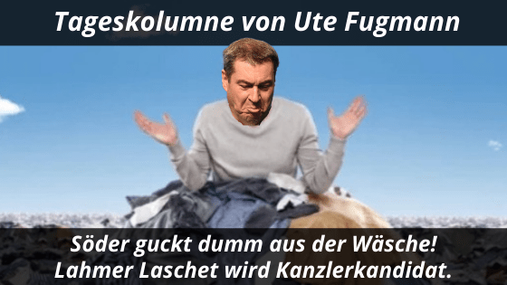 Schön blöd guckt der bayrische Sonnenkönig Markus Söder von der CSU nun aus der Wäsche. Sein Putschversuch gegen die grosse Schwesterpartei CDU ging nach hinten los. Der Verlierer Armin Laschet hat die Kanzlerkandidatur der Union gewonnen. Dumm gelaufen. Das grüne Bäer-Böckchen probt inzwischen ihre Antrittsrede. Es muss alles noch schlimmer werden, um dass es besser werden kann.
