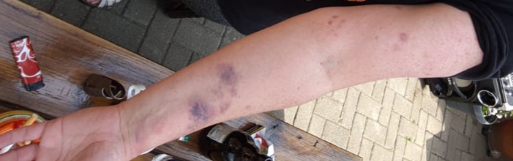 Als wir 9:00 Uhr entlassen worden, musste ich feststellen, dass meine Frau und der ebenfalls Inhaftierte an sämtlichen Körperteilen blau waren. Nach meinem Kenntnisstand musste der junge Mann im Krankenhaus behandeln lassen. Es gab von unserer Seite keine Versuche die Beamten anzugreifen, aber natürlich ein leichtes Wortgefecht, aufgrund des aggressiven Auftretens. Ein Umstand der natürlich so einen gewalttätigen Übergriff, durch die Polizisten überhaupt nicht rechtfertigen kann.