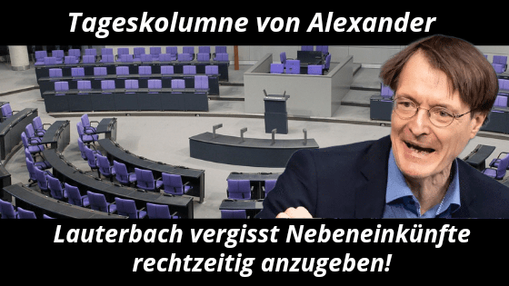 Der in den Staatsmedien omnipräsente Seuchenheilige und selbsternannte Gesundheitsexperte mit Dentalproblemen Karl Lauterbach, vergaß doch glatt in dem ganzen Corona-Wahn seine üppigen Nebeneinkünfte rechtzeitig anzugeben. Die Corona-Mutante mit SPD-Parteibuch bedauert diesen Vorfall und möchte die Einkünfte nun für Indien spenden.