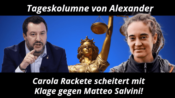 Krachende Niederlage für die selbsternannte Schiffskapitänin Carola Rackete. Das von ihr angestrebte Verfahren gegen Italiens Ex-Innenminister Matteo Salvini wurde von einem Mailänder Berufungsgericht verworfen. Bereits Anfang Mai wurde Salvini vom Vorwurf der Freiheitsberaubung freigesprochen. Der ehemalige Innenminister bezeichnete die beinbeharrte Ikone der Multi-Kulti-Fetischisten unter anderem als „Gesetzlose, Komplizin von Schleppern, potenzielle Mörderin, Verbrecherin, Kriminelle und Piratin“. Rackete wurde Ende Juni 2019 auf der italienischen Mittelmeerinsel Lampedusa festgenommen und unter Hausarrest gestellt. Rackete hatte das Schiff „Sea-Watch 3“ mit dutzenden Migranten an Bord, trotz Verbots der italienischen Behörden in den Hafen gesteuert. Während die Gerichte in Italien wohl erkannt haben, das Salvini nach Recht und Gesetz handelte, ticken die Uhren in der Bunten Republik etwas anders und die Kapitänin bekam für ihr agieren mehere Preise überreicht. Ein Gutschein für einen Friseurbesuch war wahrscheinlich nicht dabei.
