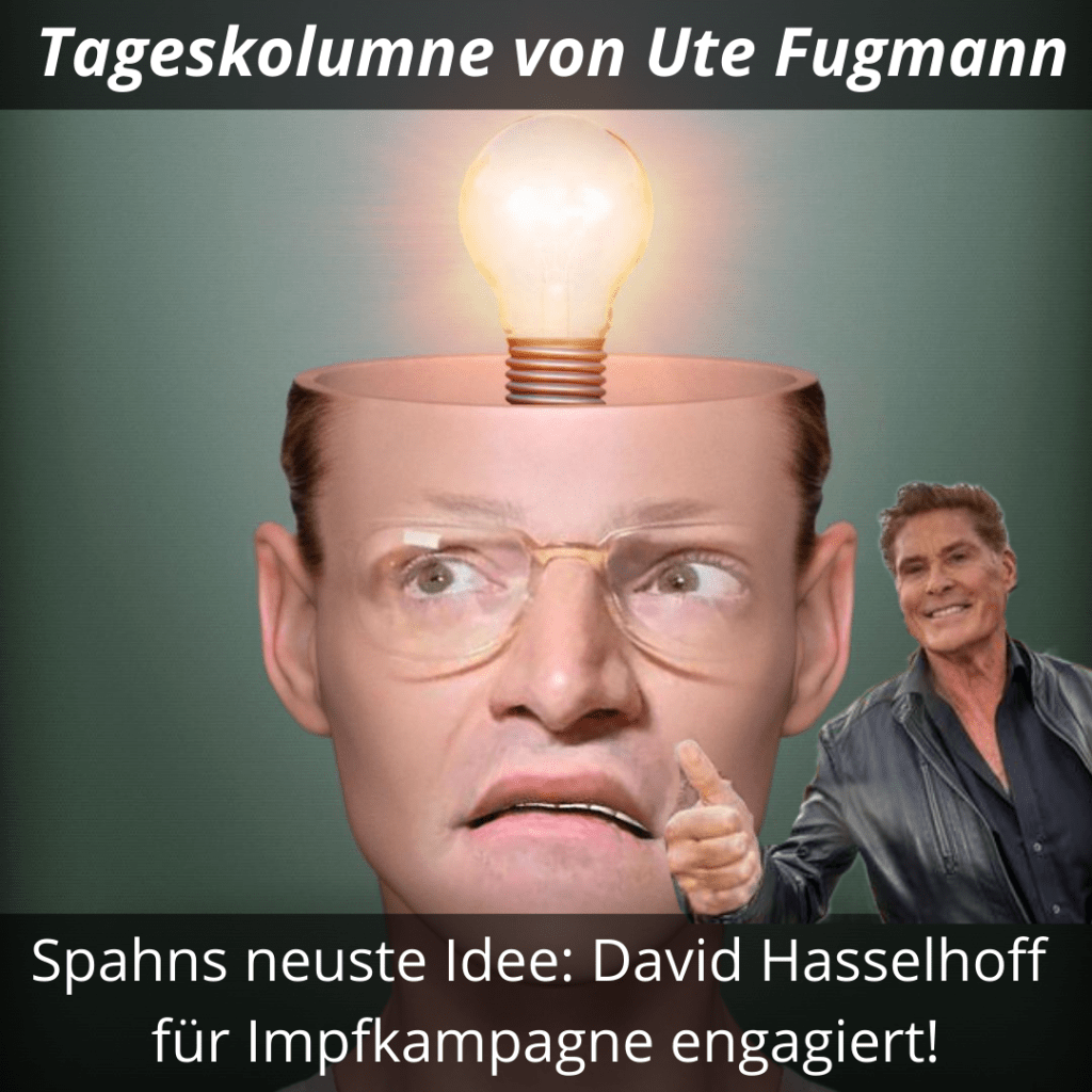 Berlin. „I’v been looking for freedom“ war gestern. Genauer gesagt vor über dreissig Jahren. Der Dunkeltapps ähm Night-Rider ähm Knigth-Rider David Hasselhoff trällert jetzt „I found freedom“ in der Propaganda-Mechanerie unter dem Hashtag „ÄrmelHoch“ des Bundesgesundheitsministeriums . Hmm. Möge der 68-Jährige seinen Frieden in der Corona-Impfung finden! Manchmal findet er noch nicht mal den Weg zur Toilette. Da kann ihm auch sein sprechendes Auto K.I.T.T aus der sinnbefreiten Serie der 80’er nicht helfen. Egal. Hasselhoff hat damals die Mauer zum Einsturz gebracht. Das wussten wir in Dresden damals nicht. Wir hatten kein ARD. Das hiess bei uns „Ausser Raum Dresden“. Spässle.