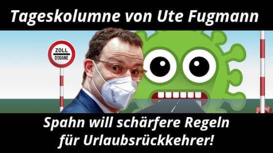 Der deutsche Bankkaufmann auf dem Posten des Gesundheitsministers Jens Spahn will zur Urlaubszeit eine Testpflicht für alle Reiserückkehrer. Hmm. Mecklenburg-Vorpommerns Ministerpräsidentin Manuela Schwesig ist ganz seiner Meinung. „Wir brauchen wieder schärfere Regeln bei der Einreise aus ausländischen Risikogebieten. Ein Test reicht da nicht aus. Auch hier sollte die Regel gelten, dass der erste Test bei der Einreise erfolgt und dass man sich dann nach fünf Tagen Quarantäne freitesten kann“ Gut. Dann halt nicht.