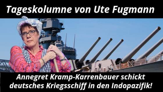 Der Witz der Bundesregierung in Form der Verteidigungsministerin Annegret Kramp-Karrenbauer schickt die Fregatte „Bayern“ hinters Horn von Afrika. Merkels ausrangiertes Sturmgewehr AKK hat das Kriegsschiff in Wilhelmshaven mit 232 Soldaten und -innen mit den nichtssagenden Worten „Unser Engagement im Indopazifik bedeutet, nicht gegen etwas oder jemanden zu sein, sondern gemeinsam für etwas einzustehen. Es geht um gemeinsames Handeln. und darum, mögliche Konflikte friedlich und partnerschaftlich zu lösen“ in See stechen lassen. In dem Gebiet herrschen Spannungen zwischen China und den USA oder so ähnlich. „Im Indopazifik geht es um unsere Werte und Interessen“, wieherte die Rosinante der Bundesraute. Echt jetzt? Ich dachte die vertreten die Abtrünnigen der CDU wie Maaßen, Bosbach und Otte in Thüringen. Ach, egal. Hauptsache der Kahn geht nicht unter. Zumindest nicht der vor Asien.