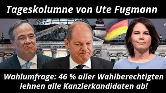 Laut n-tv lehnen 46 Prozent der Wahlberechtigten alle Kanzlerkandidaten ab. Hmm. Ich auch.