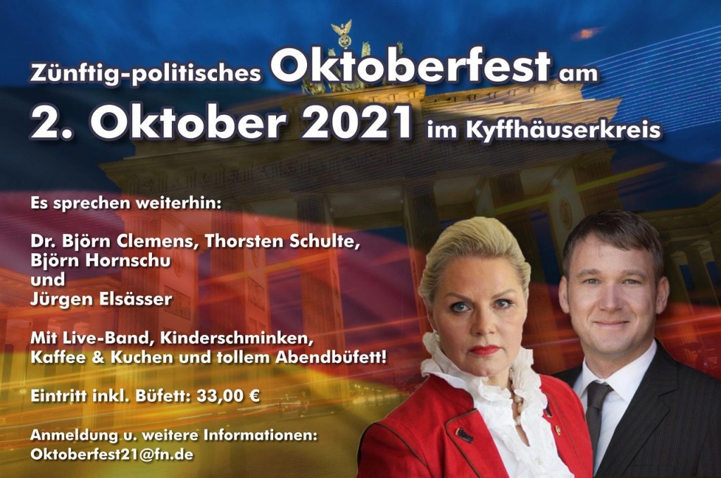 Zum Oktoberfest laden Doris von Sayn-Wittgenstein, MdL aus Schleswig-Holstein und der ehemalige Fraktionsvorsitzende der AfD Sachsen-Anhalt André Poggenburg.