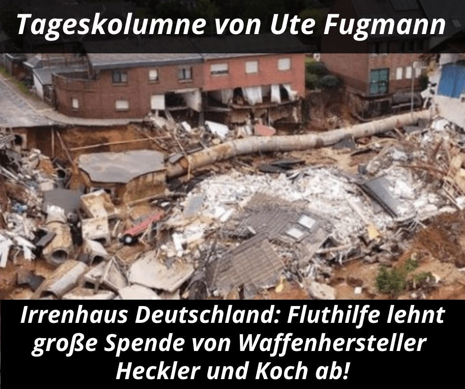 Der deutsche Waffenhersteller ,Heckler und Koch’ wollte auch nur Gutes tun. Eine Spende von 15 000 Euro für die Betroffenen der Flutkatastrophe wurde von der „Aktion Deutschland hilft“ abgewiesen. Hmm. Das Aktionsbündnis verwies auf ethnische Leitlinien. Ich lach mich schlapp. H&K konterte, dass damit nicht nur die Mitarbeiter von Heckler & Koch herabgesetzt, „sondern auch die Sicherheitskräfte Deutschlands, der EU und der NATO, die täglich unsere Produkte benutzen“ verunethnischt werden. Ja, das Wort ist neu! Ich muss gleich mal nachfragen, wegen der Rechte. Spässle.