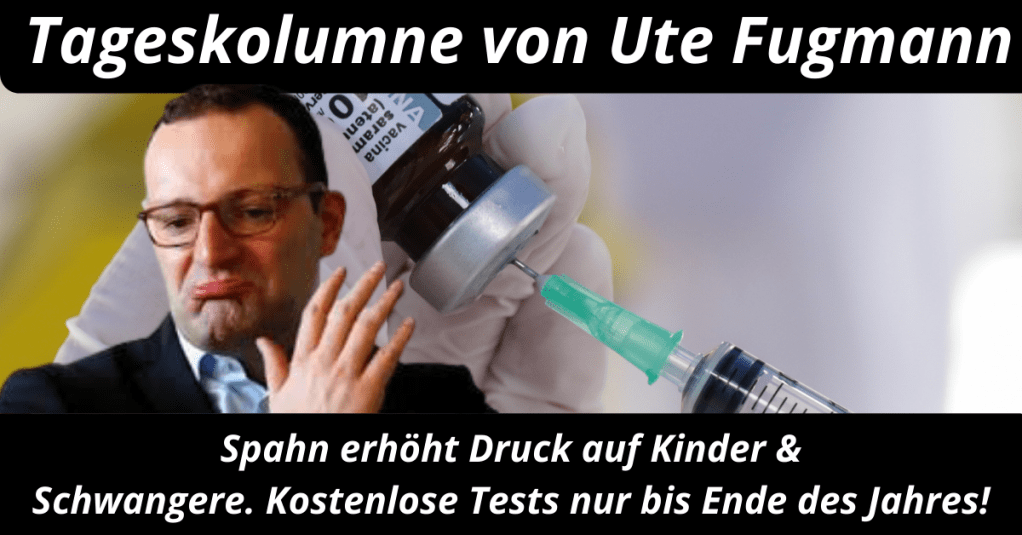 Berlin. Der Bundesgesundheitsverkaüfer Jens Spahn will Kindern und Jugendlichen von 12 bis 17 Jahren sowie Schwangeren nur bis Ende des Jahres kostenlose Corona-Schnelltests zu gestehen. „Für beide Gruppen ist die Impf-Empfehlung der Stiko erst kürzlich gekommen. Ab dem 11. Oktober werden für alle, die sich impfen lassen könnten, Bürgertests kostenpflichtig“, sagte das regenbogenfarbene Einhorn ähm der Minister. Gleichzeit betonte das Hörnchen, dass eine Impfung eine freie persönliche Entscheidung sei. „Wer sie nicht wahrnimmt und sich nicht impfen lässt, der muss dann eben die Kosten für Test selbst tragen“ Hmm. Ich bin nicht schwanger, aber ich würde das meinem ungeborenen Kind und auch meinem Halbwüchsigen nicht antun.