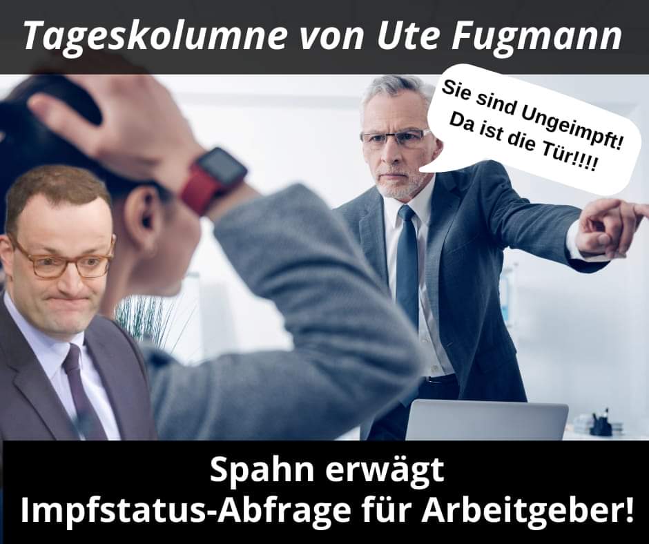 Berlin. Der Bundesgesundheitsverkäufer auf Ministerposten Jens Spahn haut wieder einen raus! „Warum sollen die anderen für jemanden zahlen, der sich auch hätte impfen lassen können“, meinte der hinterrückse Bankkaufmann in der Talkrunde „Hart aber Fair“ des gebührenfinanzierten Propagandasenders ARD in Bezug auf den baldigen Wegfall der kostenlosen Bürgertests. Diese seien sehr teuer für den Steuerzahler. Hmm. Die Tatsache, dass auch Ungeimpfte diese Steuern zahlen, ignoriert er komplett. Ebenfalls verdrängt der aalglatte Pharmalobbyist, dass genau diese Steuerzahler auch seine Diäten und somit sein schäbiges Anwesen im Wert von zirka 4 Millionen zahlen. „Wir müssen gerade sehr aufpassen, dass aus Spannungen, die da sind, nicht Spaltungen werden“, fügte er scheinheilig an. Für Arbeitgeber kann er sich aber vorstellen eine Erlaubnis zu erteilen, den Impfstatus ihrer Angestellten zu erfragen. Genau. Fragen, kostet ja nichts. Ausser vielleicht den Job. Unglaublich.