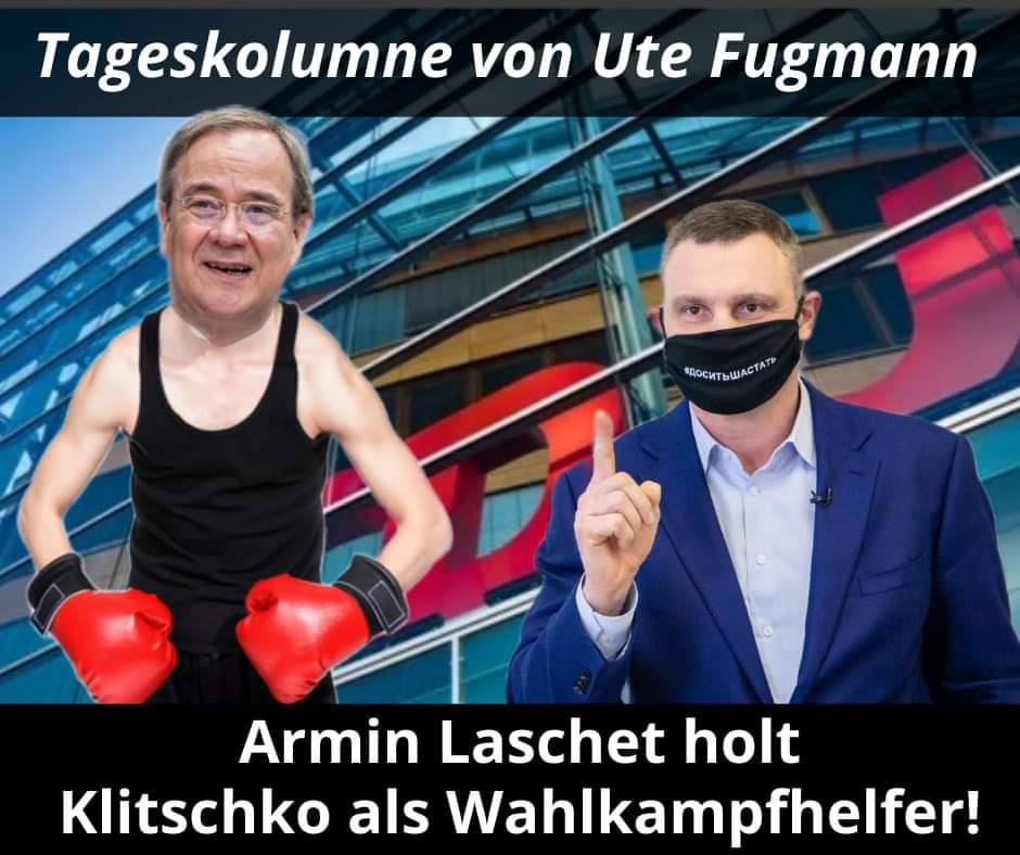 Der lasche Kanzlerkandidat der Union Armin Laschet holt sich Vitali Klitschko in seine „Wahlkampf-Arena“. Nun gut. Beide haben einen an der Klatsche. Spässle.