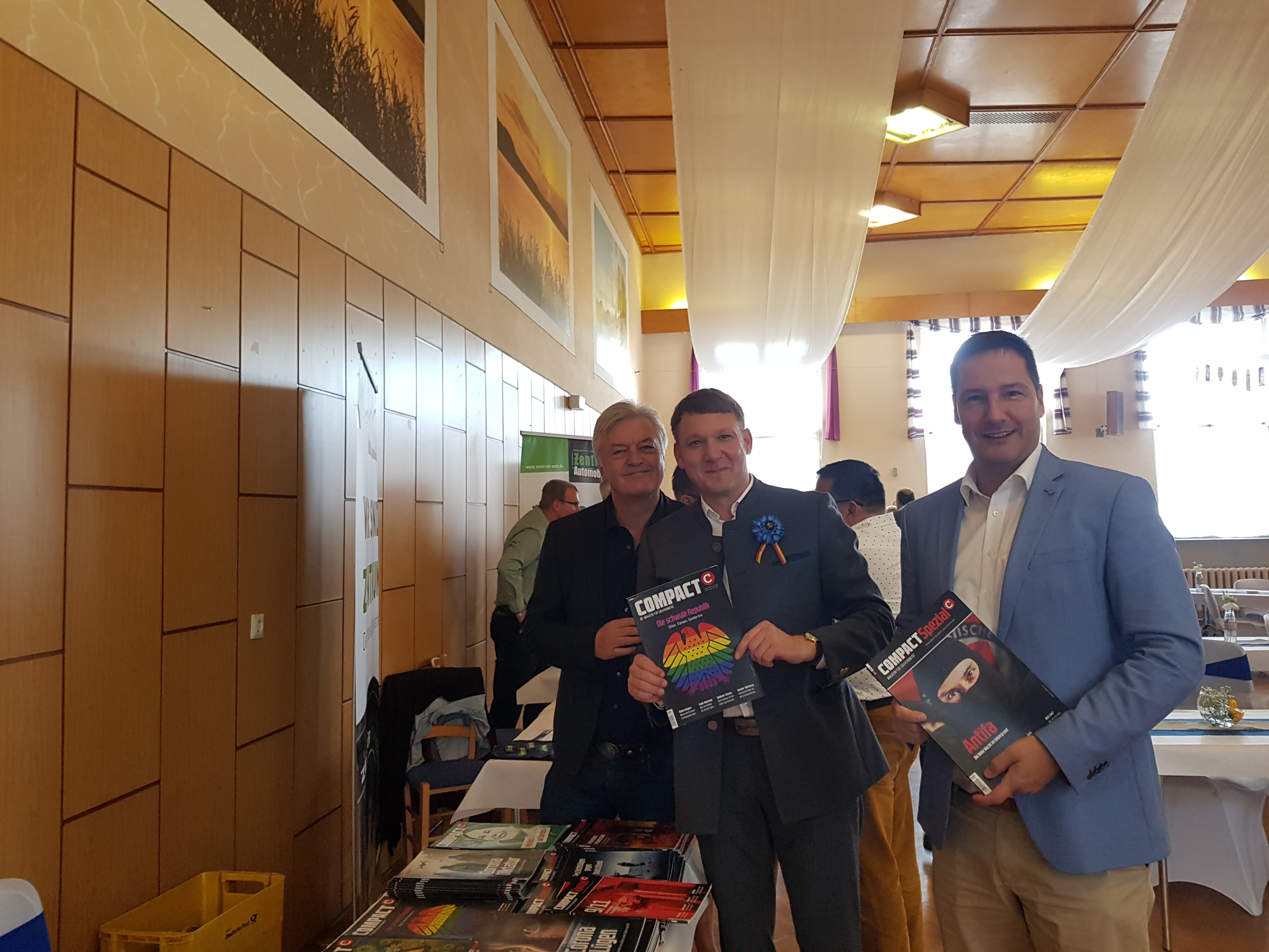 Jürgen Elsässer vom Compact-Magazin, unsere Gastredakteurin Schwester Anja und Alex von Ungetrübt Media.