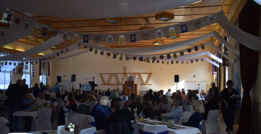 Für die musikalische Unterhaltung sorgte eine zünftige Musikkapelle, die mit alten und neuen Schlagern, aber auch mit Volksliedern, für beste Stimmung im Saal sorgte.
