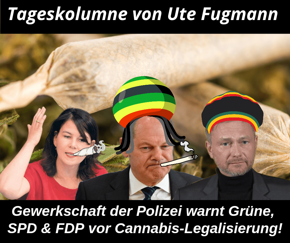 Apropos Zeuch: Der Bundesvorsitzende der GDP Oliver Malchow warnte die Unterhändler der Sondierungsgespräche zwischen den Grünen, Gelben und Roten vor der Legalisierung von Cannabis. Hmm. Wenn diese Ampel-Koalition aus SPD, FDP und Grünen die Regierungsgeschäfte übernimmt, brauchen wir das Zeuch in rauen Mengen zu Discountpreisen! Spässle.