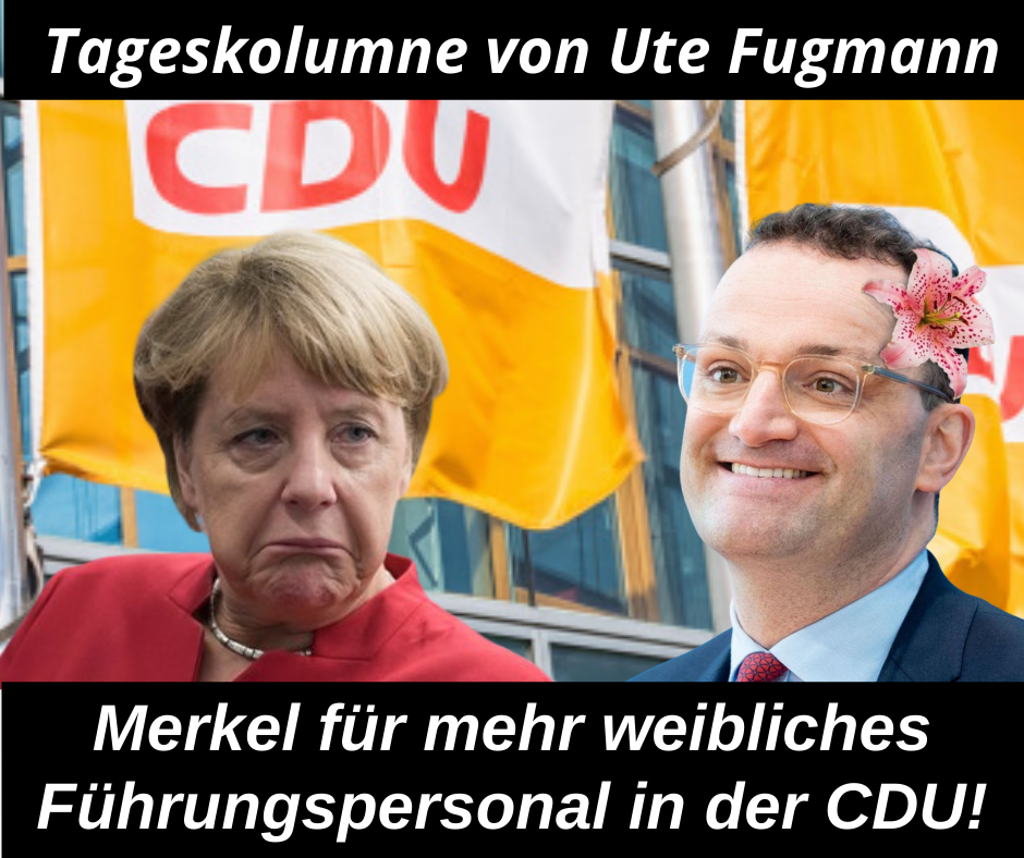 Berlin. Die scheidende Bundesraute des Grauens Angela Merkel sprach sich für Frauen in Führungspositionen ihrer Partei aus. „Wenn man eine Volkspartei sein will, muss man der Parität nahekommen und sie wollen. Nur Männer, das passt nicht mehr in die Zeit. Es muss weiter daran gearbeitet werden, dass sich Frauen insgesamt mehr zutrauen. Denn selbst wenn welche da sind, ist es ja nicht so, dass sie zum Beispiel um den Parteivorsitz rangeln“, sagte die baldige Bundeskanzlerin a.D. nach quasi 16 Jahren Alleinherrschaft. Mann, Mann, Mann! Ich persönlich hab mich schon zu ihrem Amtsantritt fremdgeschämt. Ja, ich bin eine Frau und ich komme aus der Zukunft ähm aus der DDR! Und Nein, ich denke selbst. Wahrscheinlich gerade deshalb.