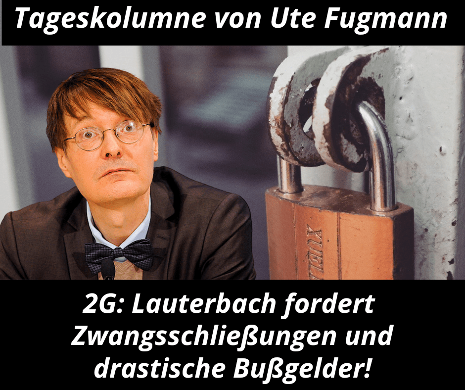 Der selbsternannte Epidemiologe von der Reste-Rampe der SPD Karl Lauterbach wünscht sich für ertappte Gastwirte mit mangelhafter 2G-Verfolgung neben saftigen Bussgeldern eine Zwangsschliessung von mindestens sechs Wochen. In Kristalle zerfallene Scheiben der Lokale sind die zwangsläufige Steigerungsform. Nicht nur in der Nacht. Deutschland, mir graut vor dir!