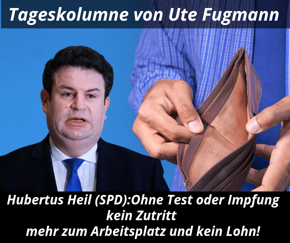 Der Bundesarbeitsminister Heil ähm Hubertus von den Spezialdemokraten der SPD haut in dieselbe Kerbe der Spaltung. „Menschen müssen sich impfen lassen. Wer den Arbeitsplatz betritt, muss ab kommender Woche nachweisen, dass er oder sie geimpft ist, und wenn das nicht da ist, einen tagesaktuellen Test mitbringen. Wenn man das nicht tut, darf man den Betrieb nicht betreten, und dann muss man auch damit rechnen, dass zum Beispiel Lohnfortzahlung in Frage steht“ Hmm. Okay. Ich bin gespannt wer seine Diäten zukünftig erarbeiten soll. Spässle.