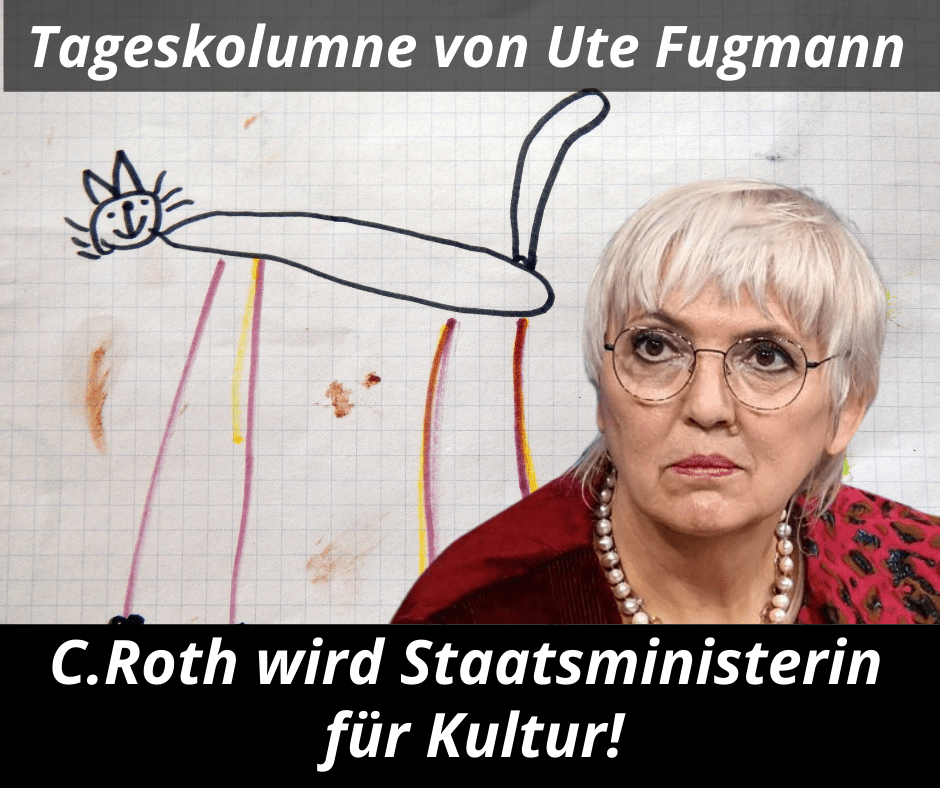 Die neue Bundesregierung schmeisst schon mal Ton, Steine und Scherben auf ihren Weg. Das unfähigste Element aus dem Bundestag Claudia Roth soll Staatsministerin werden. „Es ist vorbei bye bye, Junimond“ Unglaublich. Deutschland, mir graut vor Dir! Kein Spässle!