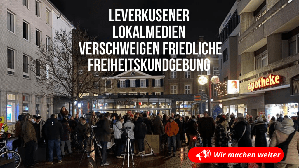 Was nicht sein darf und der politischen Klasse mißfällt , dass wird dann durch unsere nahezu gleichgeschalteten Lokalmedien einfach totgeschwiegen. So hat es in den Leverkusener Lokalmedien die große Freiheitskundgebung mit 160 Teilmehmern, die in Opladen friedlich gegen die völlig unverhältnismäßigen Corona-Zwangsmaßnahmen demonstrierten , einfach nicht gegeben. Eine solche überparteiliche Protestkundgebung aus der Mitte unserer Zivilgesellschaft passte einfach nicht in das engstirnige und beschränkte Weltbild unserer Lokalmedien. So verschweigen sie einmütig die Kundgebung und machen sich zur Erfüllungsgehilfen der regierenden politischen Klasse!