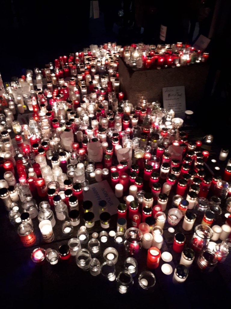Die Vernichtung von einem Meer aus Kerzen, ist ein untrügliches Zeichen dafür, dass wohl in dieser Stadt gesunde Menschen aus Pflege & Medizin nicht gebraucht werden. Politiker die mit ihrer asozialen Gesundheitspolitik dafür gesorgt haben, dass unser Gesundheitssystem selbst auf der Intensivstation liegt, suchen nun in Ungeimpften die Schuldigen für ihre Fehlpolitik. Ein Treppenwitz sondersgleichen!