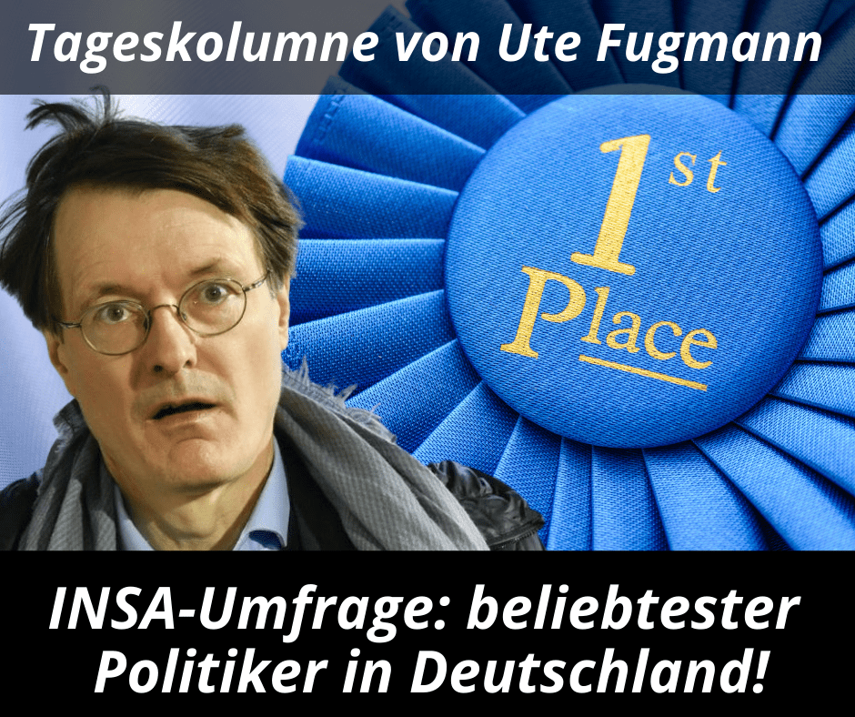 Noch egaler ist eine Umfrage des Institutes „Insa“ für die Bild. Das schreibt die Welt. Noch ein Schenkelklopfer! Demnach ist der Gesundheitslobbyist der Pharmaindustrie auf Ministerposten Karl Lauterbach der beliebteste amtierende Politiker nach der Bundesraute a.D. Angela Merkel. Bissel Spass muss sein! Kein Spässle!