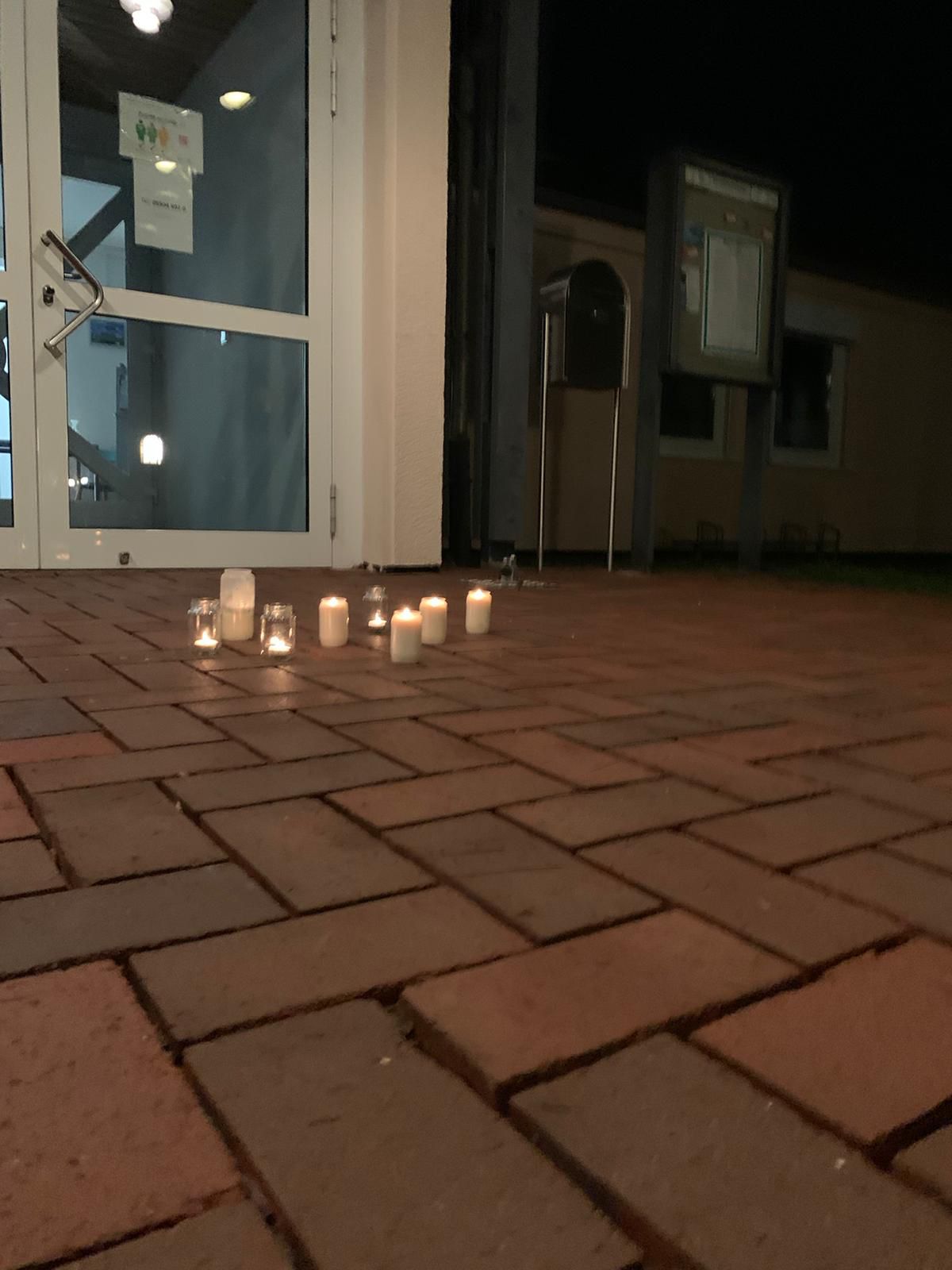 10 Leute trafen sich (natürlich zufällig) am Straßenrand und spazierten einmal durch‘s Dorf und legten vor der Gemeinde Kerzen ab.