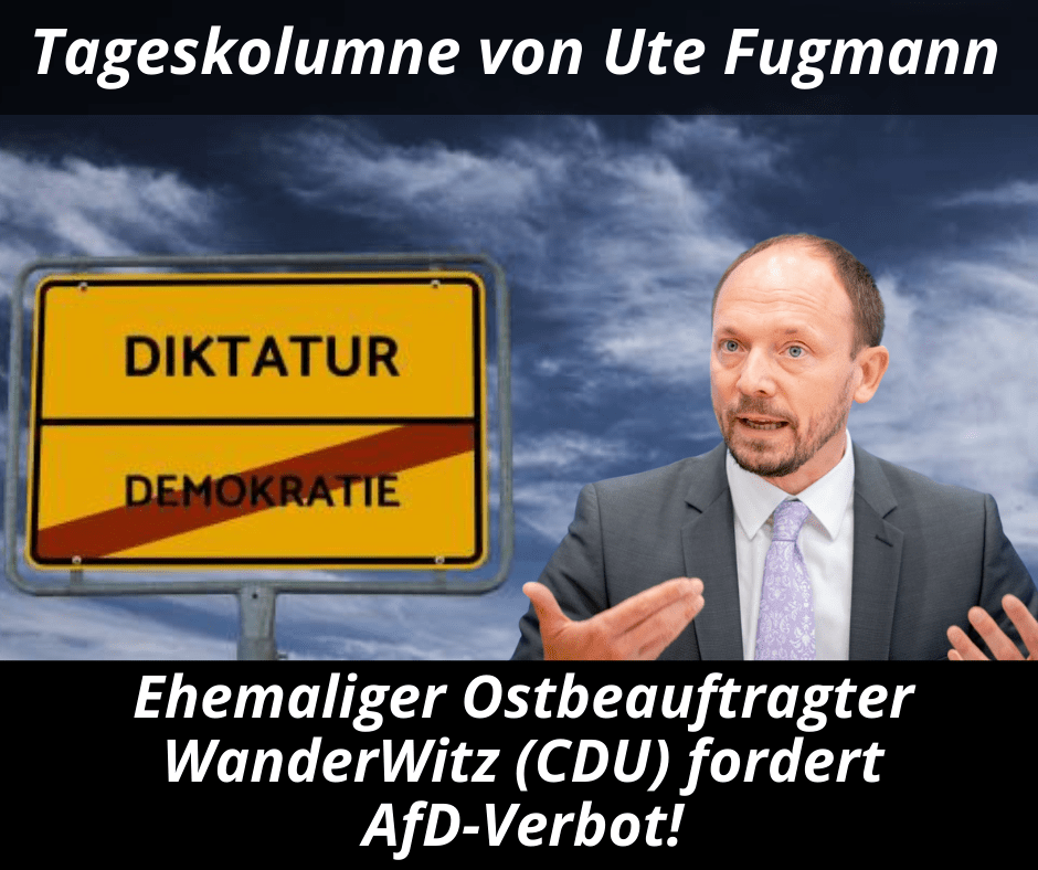 Eine halbe Persönlichkeit ist der ehemalige Ostbeauftragte der Bundesregierung von der CDU Marco Wanderwitz. Zwar kommt der regierungstreue Vasall aus dem sächsischen Chemnitz, aber sonst hat er nicht viel zu melden. Ach doch! „Die AfD ist inzwischen – insbesondere in Sachsen – in einer Weise radikalisiert, dass sie eine sehr ernste Gefahr für die freiheitlich-demokratische Grundordnung ist. Rechtextremistisch an Haupt und Gliedern“ Es sei „höchste Zeit für ein Verbotsverfahren“. Klar doch. Gegessen. Spässle.