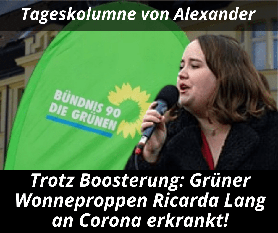 Die grüne Wuchtbrumme Ricarda Lang die auf Steuerzahlers Kosten im Bundestag hockt sorgt tatsächlich für eine Positivmeldung. Natürlich nicht durch ihre politische Arbeit, sondern durch ihren Corona-Test. Der durchgeboosterte Nachwuchsstar der Grünen ist glücklich geimpft zu sein und hockt nun in Quarantäne. Nach der Kulturministerin Claudia Roth, ist Lang bereits der zweite prominente Seuchenvogel in der grünen Bundestagsfraktion. Lang hatte sich noch in dieser Woche vehement für eine Impfpflicht ausgesprochen.