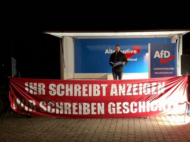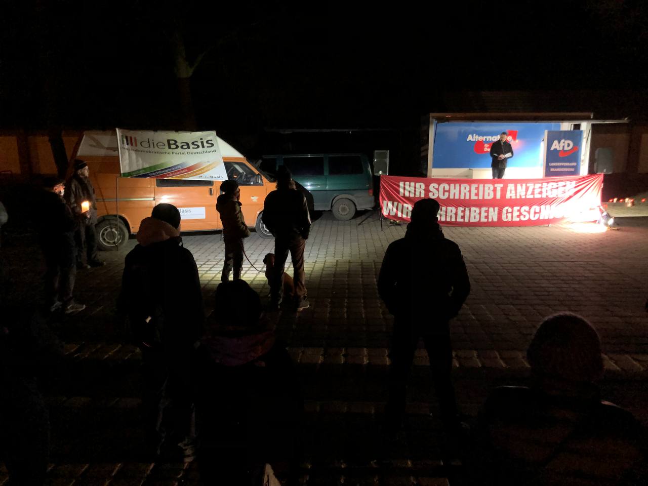 Die Gedenkveranstaltung unter dem Motto „Gegen staatliche Willkür und Gewalt “ wurde von dem Frontmann der Deutschrockband Wutbürger Andy Habermann angemeldet. Andy Habermann, Mitglied der AfD, fungierte an diesem Abend auch als Redner. Im Anschluss des Artikels finden Sie noch ein kurzes Interview mit Andy Habermann. Neben dem AfD-Bundestagsangeordneten Hannes Gnauck sprachen zudem der brandenburgische Landtagsabgeordnete Felix Teichner (AfD), ein Vertreter der maßnahmenkritischen Partei Die Basis und weitere Bürger, die das offene Mikrofon der Veranstaltung nutzten.