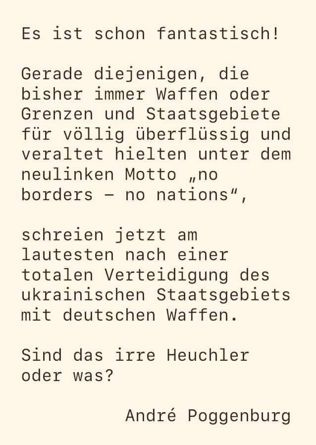 Denn urplötzlich entpuppen sich gerade die bisherigen Pazifisten als radikale Kriegstreiber und träumen schon vom nächsten Weltkrieg.