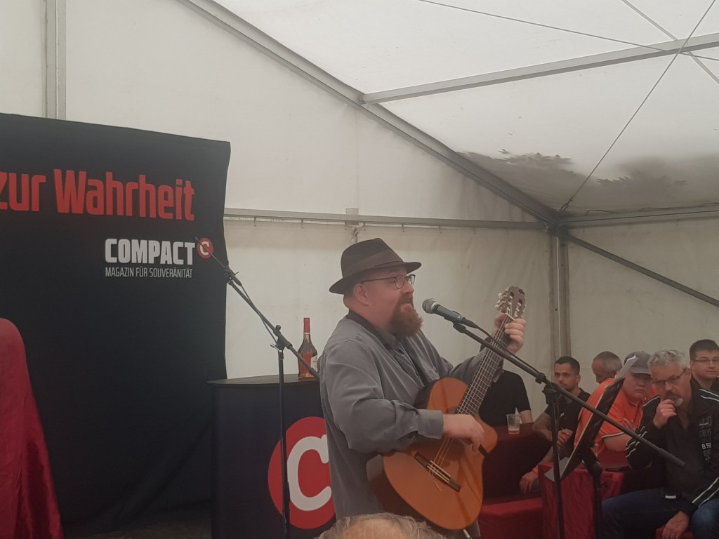 Der Vorsitzende der Freien Sachsen Martin Kohlmann stellte vor seinem Redebeitrag erstmal sein musikalisches Talent unter Beweis was für sichtlich gute Stimmung im Festzelt sorgte. In seiner Rede ging er unter anderem auf die vorherrschende Gender-Gaga-Politik ein, die mit einem jährlichen Geschlechterwechsel ihren bisher vorläufigen Höhepunkt fand.