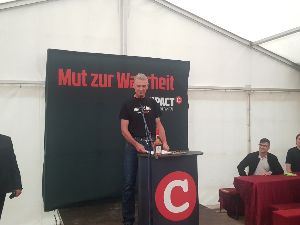 Elsässer schilderte auch den aktuellen Rechtskampf der gegen das Compact-Magazin geführt wird. Er betonte standhaft zu bleiben, denn jeder Angriff macht uns stärker!