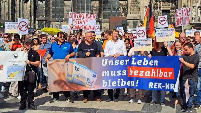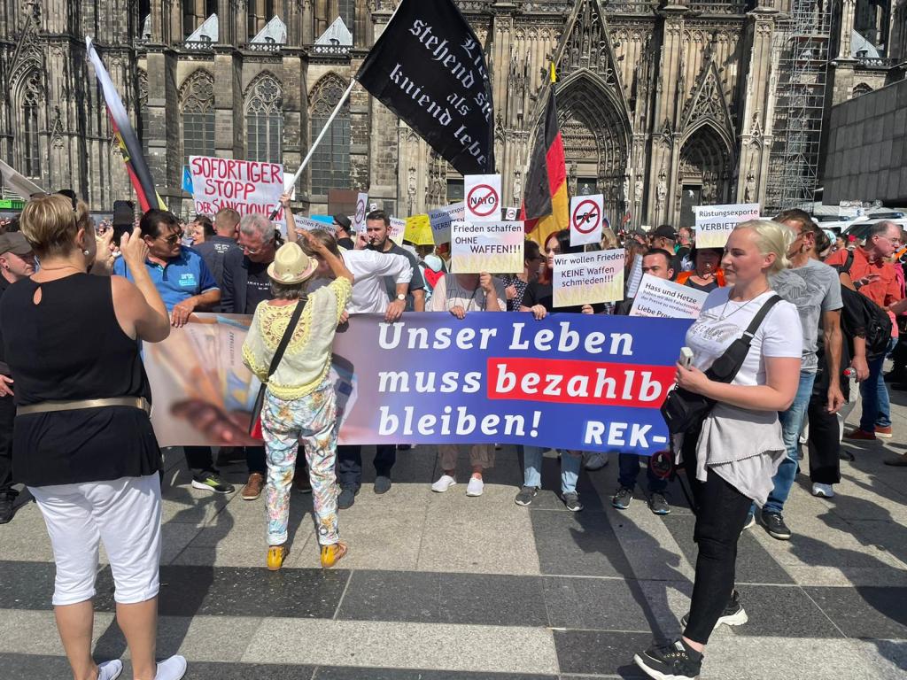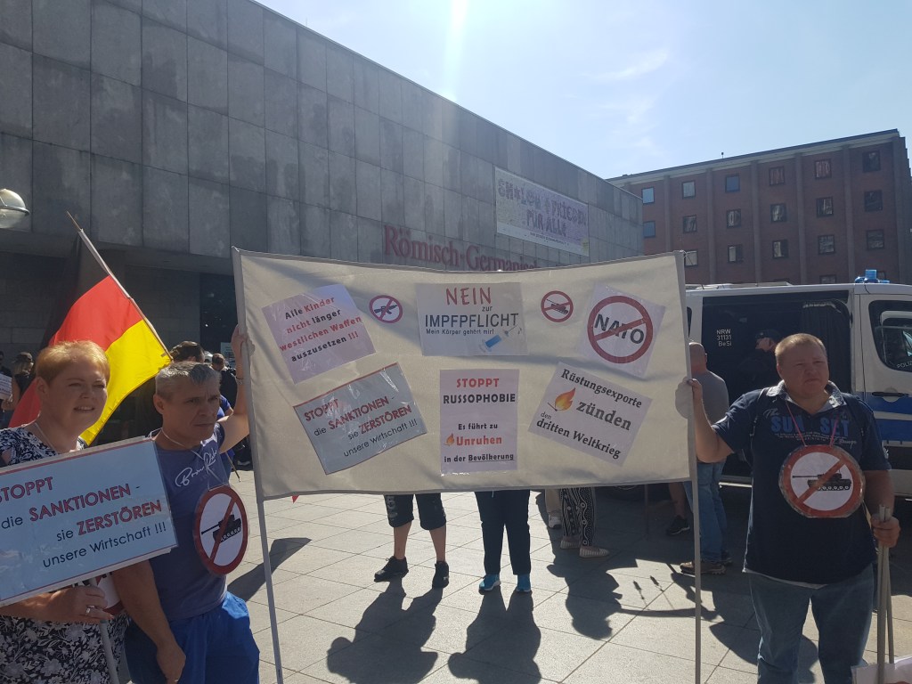 Köln zeigt Gesicht gegen Sanktionen, Waffenlieferungen und Corona-Wahnsinn mit etwa 1500 bis 2000 Teilnehmern
