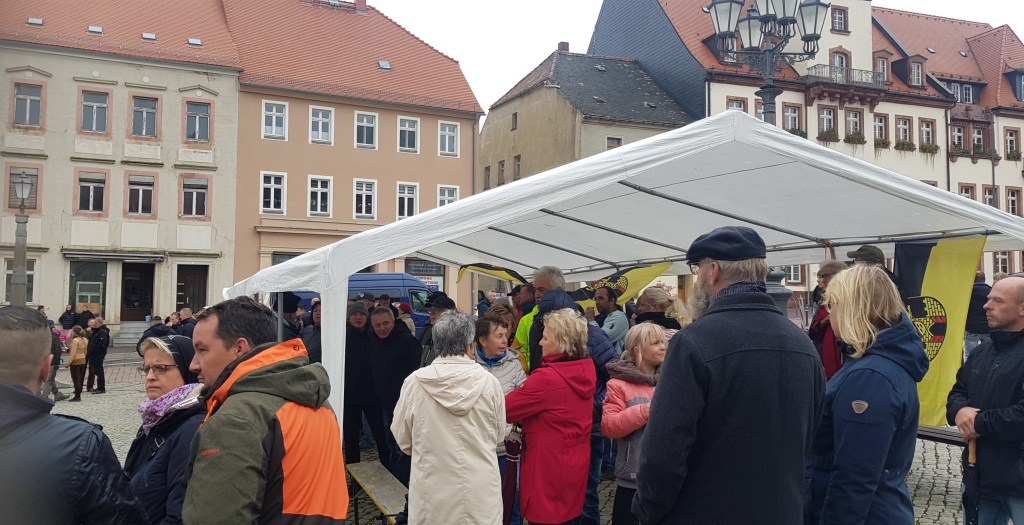 Auch im mittelsächsischen Leisnig fanden sich bei typischen Herbstwetter etwa 150 Bürger ein, um ein Zeichen gegen die aktuelle Fehlpolitik zu setzen.