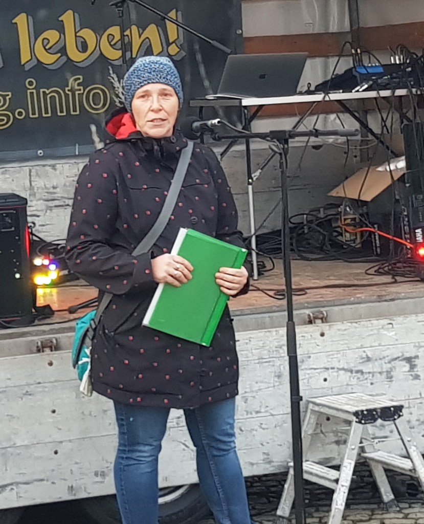 Neben verschiedenen regionalen Rednern, einem Gastredner aus Gelsenkirchen sprach auch Uta Hesse zu den Versammlungsteilnehmern. Uta Hesse holte bei der zurückliegenden Landratswahl 20 % für die Freien Sachsen.